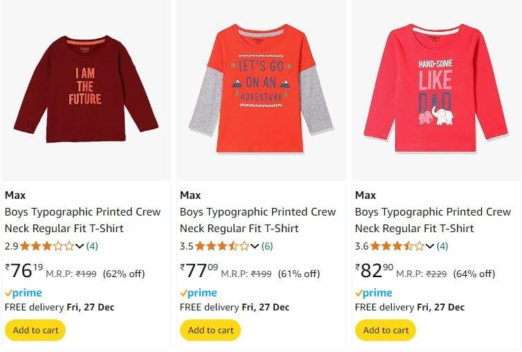 Get ready to elevate your child’s wardrobe with our fabulous Max Boys T-Shirts, now starting at an unbeatable price of just ₹76! 🎉