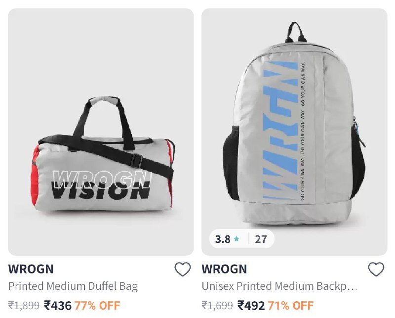 | Wrogn Classic Duffle Bag | ₹3500 | ₹560 | ![]() |