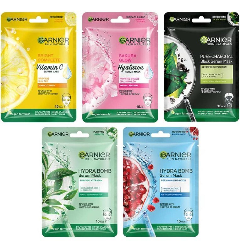 | Garnier Skin Naturals Face Mask Set 5 pcs | https://amzn.bitl.ee/M45kzG | ![]() |