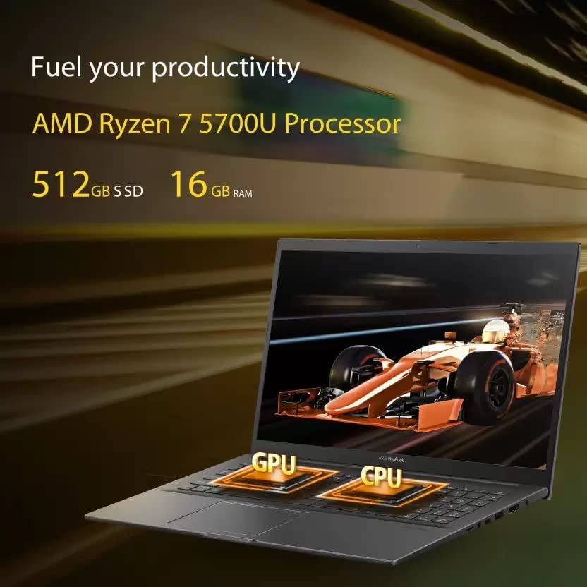 ASUS VivoBook K15 OLED Ryzen 7 Octa Core AMD R7-5700U – (16 GB/512 GB SSD/Windows 11 Home) KM513UA-L712WS Thin and Light Laptop (15.6 Inch, Indie Black, 1.80 Kg, with MS Office)
