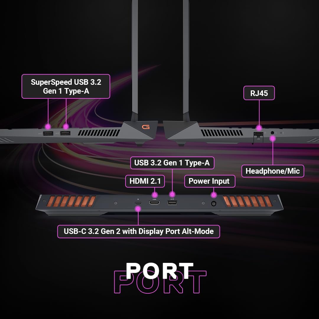 Ports: 1) HDMI 2.1, (3) SuperSpeed USB 3.2 Gen 1 Type-A, (1) USB-C 3.2 Gen 2 with Display Port Alt-Mode, (1) Headphone/Mic, (1) RJ45