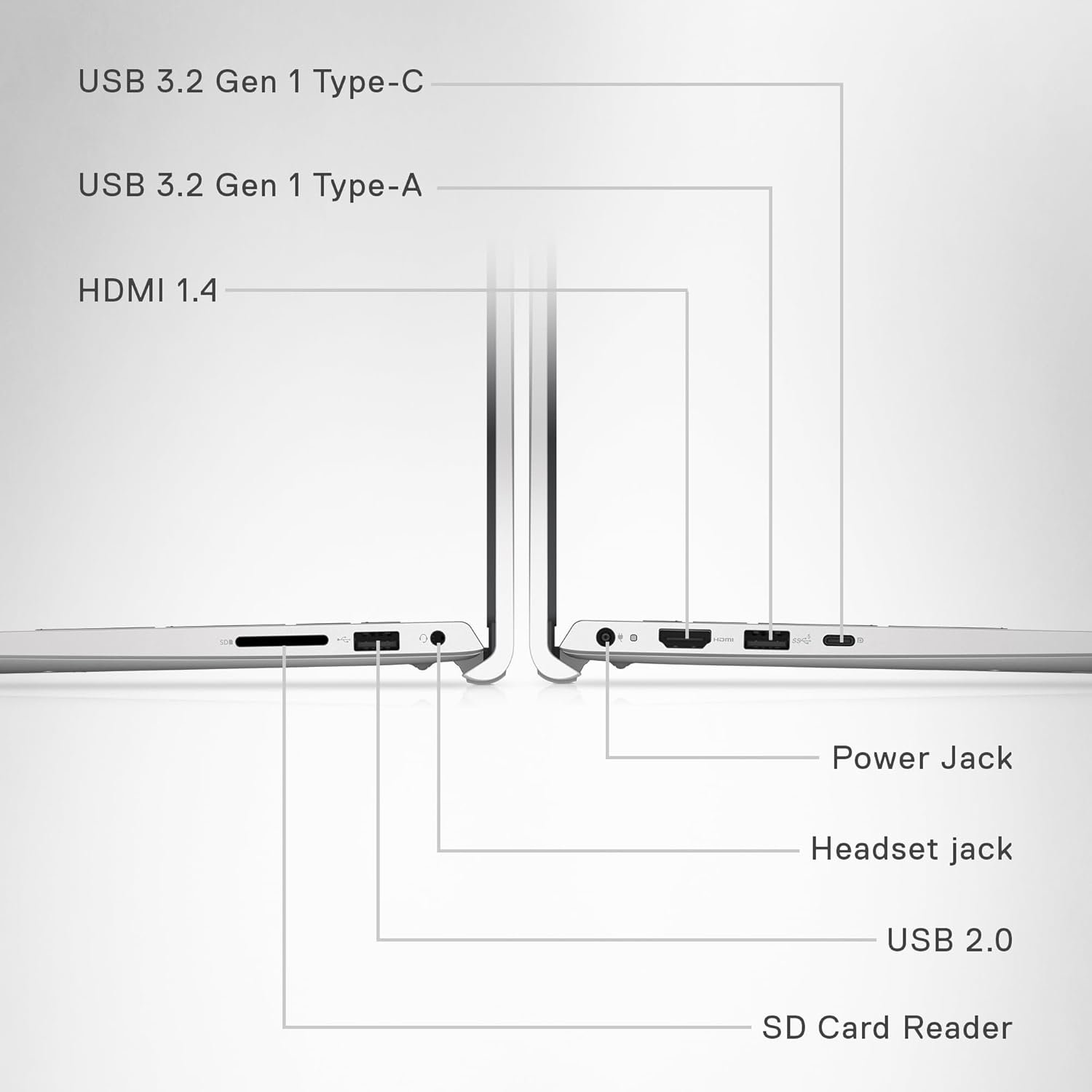 Ports: 1 USB 2.0 port, 1 Headset jack, 1 HDMI 1.4 port*, 1 Flip-Down RJ-45 port 10/100/1000 Mbps, 1 SD 3.0 card slot, 1 USB 3.2 Gen 1 port, USB 3.2 Gen 1 Type-C (data only)