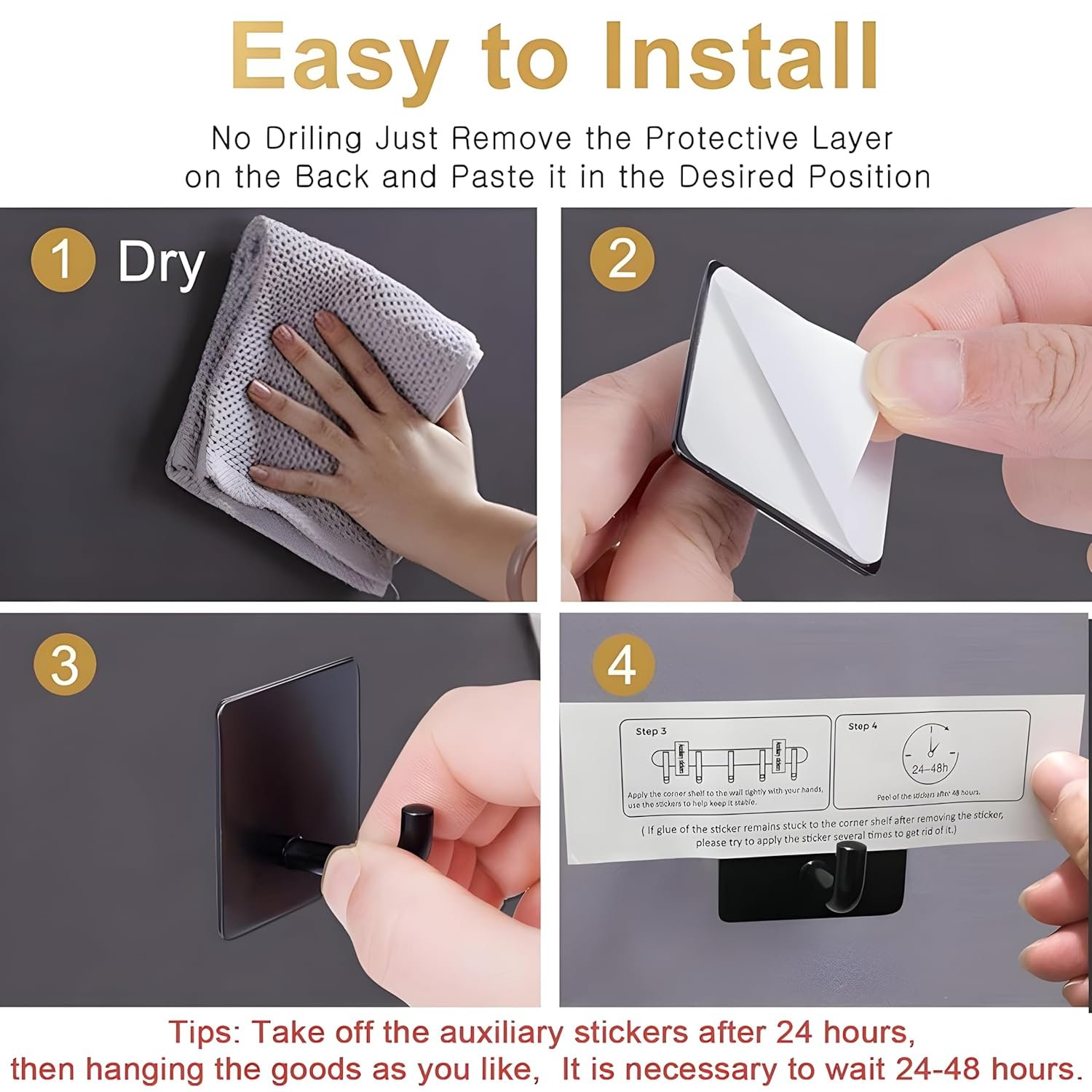 Effortless Installation : No Drilling, No Tools. Simply Peel Off The Backing And Stick To Any Clean, Dry Surface. Our High-quality Adhesive Ensures A Secure Hold. after you can hanging your product.