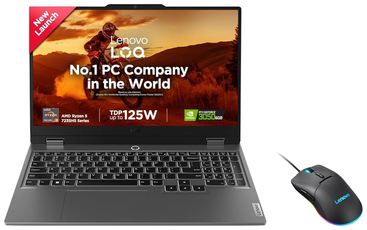 Lenovo LOQ 2024 AMD Ryzen 5 7235HS 15.6″ (39.6cm) 144Hz 300Nits FHD IPS Gaming Laptop (12GB/512GB SSD/Win/NVIDIA RTX 3050 6GB/Grey/2.4Kg), 83JC0031IN +M210 Mouse