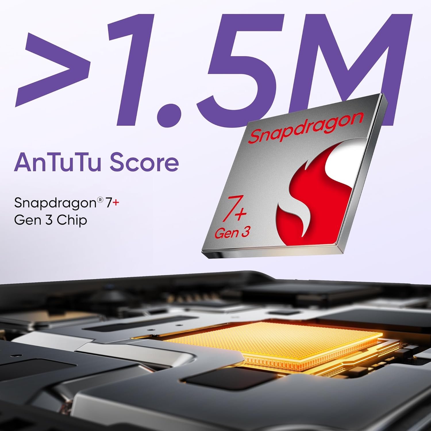 India’s 1st 7+ Gen 3 Flagship Chipset 1.5M + AnTuTu Score,According to Qualcomm’s official data, compared with Snapdragon 7+ Gen 2, CPU performance is increased by 15% and GPU performance is increased by 45%.