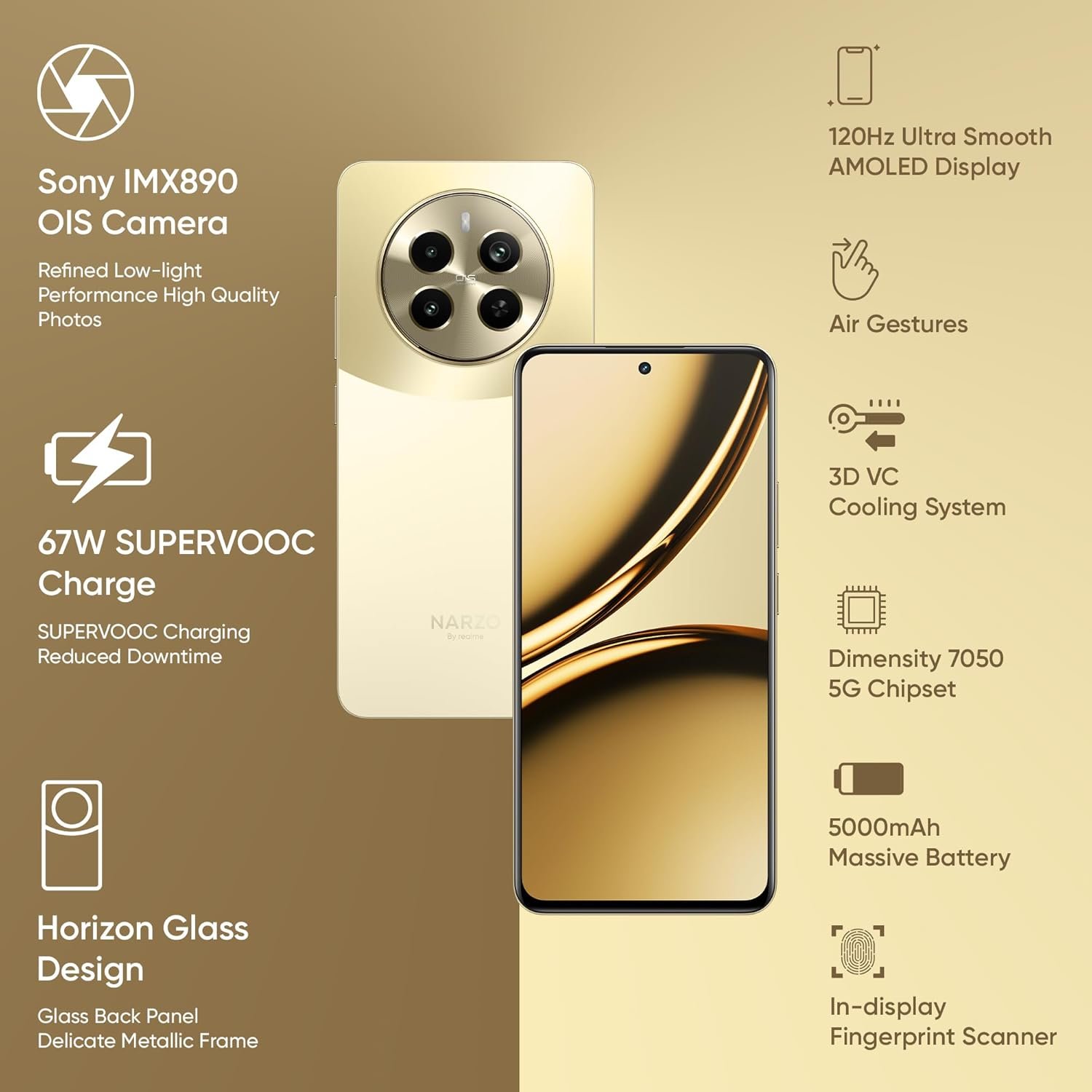 realme NARZO 70 Pro 5G (Glass Gold, 8GB RAM,128GB Storage) Dimensity 7050 5G Chipset | Horizon Glass Design | Segment 1st Flagship Sony IMX890 OIS Camera