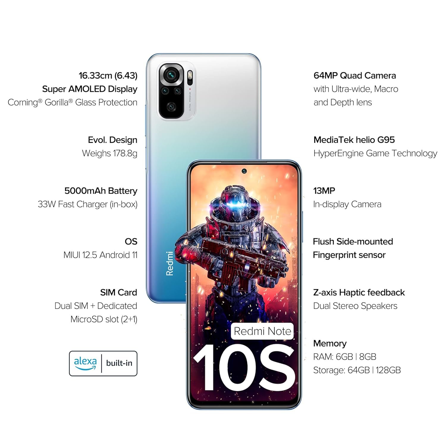 Redmi Note 10S (Deep Sea Blue, 8GB RAM,128 GB Storage) – Super Amoled Display | 64 MP Quad Camera | 33W Charger Included