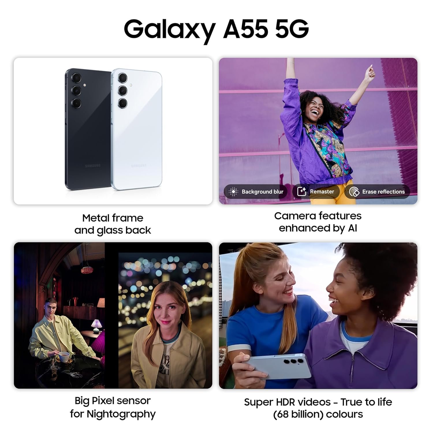 OS UPDATES & SECURITY – Get upto 4 Generations of AndroidOS Upgrades & 5 Years of Security Updates with Samsung Galaxy A55. Includes 1 Year Manufacturer Warranty for Device and 6 Months for In-Box Accessories.