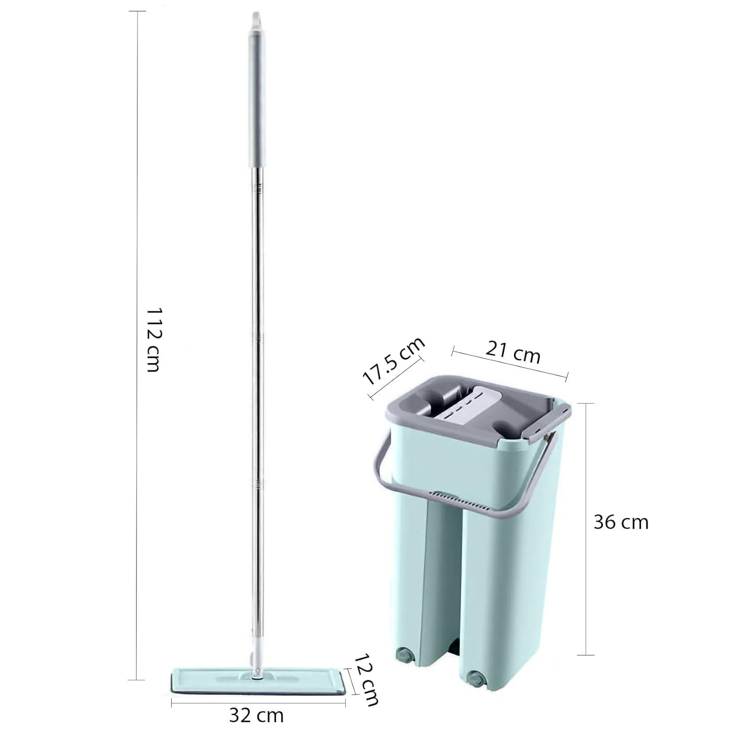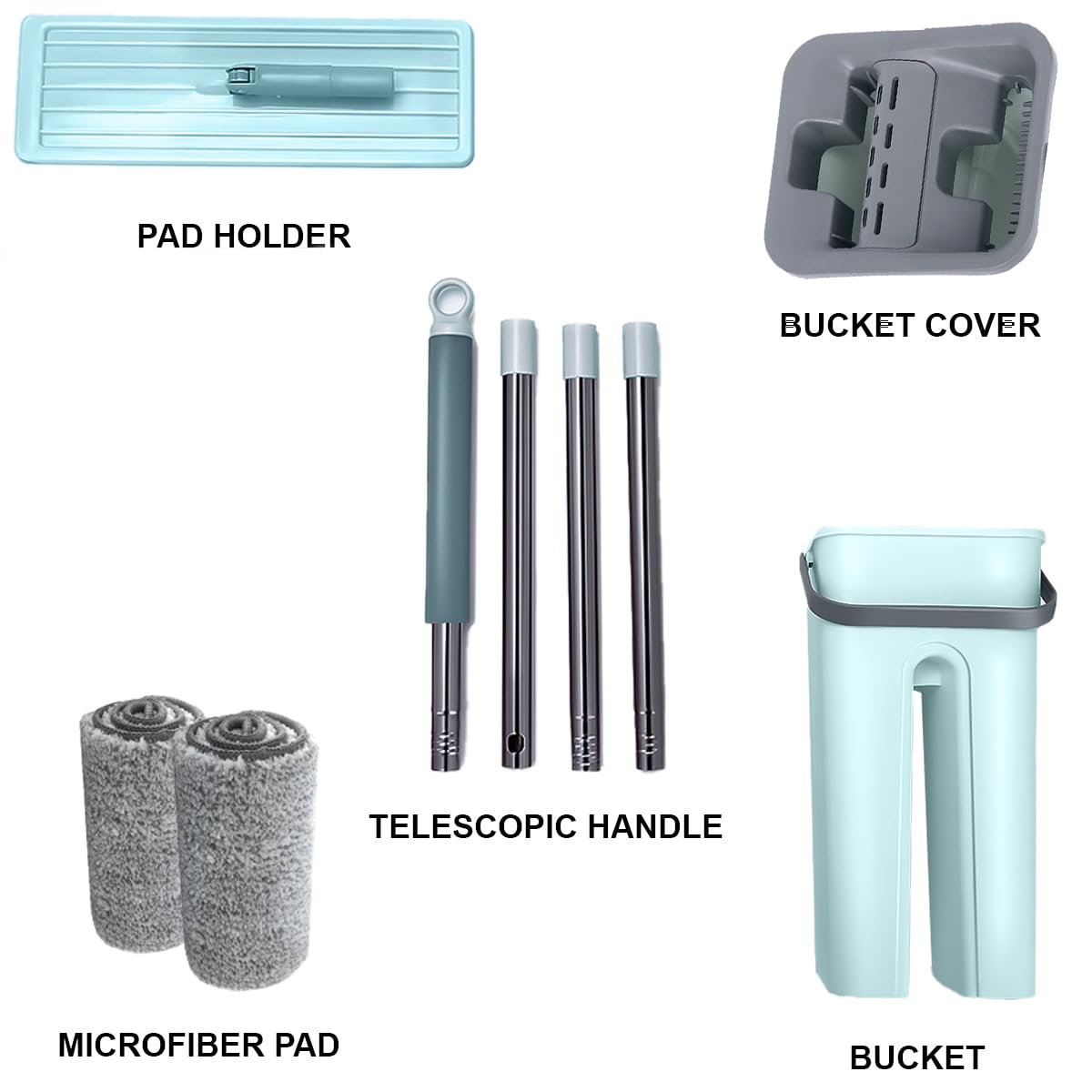 STELLIX Moppers for Cleaning Floor| Mop Bucket for Home & Kitchen| Flat Mop with Telescopic Mopping Stick| Floor Cleaners Pocha Mob for Wet & Dry Cleaning Supplies with 2 Microfiber Pad| Small Green