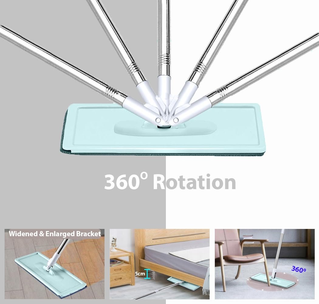 FLAT MOP NO CORNERS MISSED: Our Flat mop with flexible mop head can reach to any corners and those “under-the-whatever” places. Adjustable steel handle can be extended to around 4 feet, it’s also suitable for cleaning walls or windows.