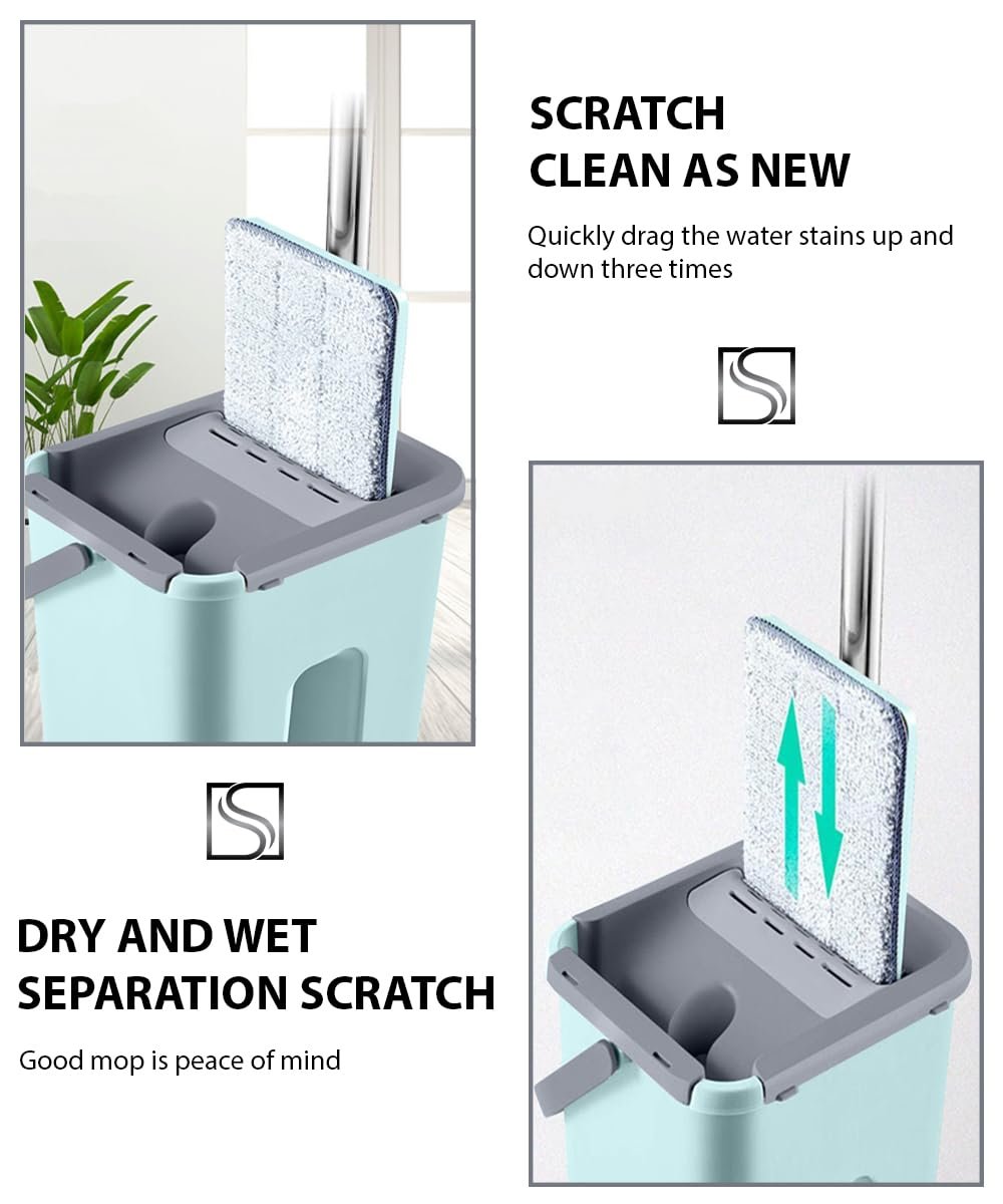 STELLIX BUCKET: 2 Chambers design to let your hands leave dirty water. One chamber to WASH MOP, fill with full clean water and insert flat mop, move up and down a few times, inner scraper will remove hair and dust. It is so efficient to clean mop.