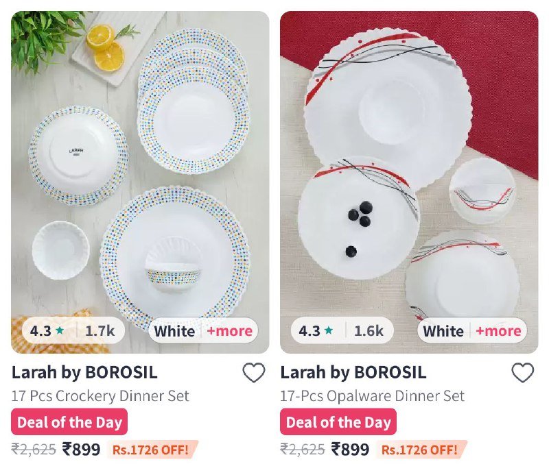 Larah By BOROSIL Dinner Set | ₹2,499 | ₹799 | ![]() |
