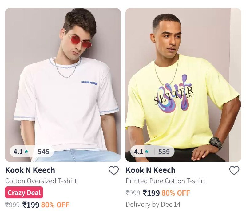 Home » Uncategorized » Myntra : Oversized T-Shirt Starts Uncategorized Myntra : Oversized T-Shirt Starts Deep December 11, 2024 1 View 0 🎉 Exciting News from Myntra! 🎉 Get ready to elevate your wardrobe with our fabulous Oversized T-Shirts starting at just ₹174! 😍 Whether you’re lounging at home, heading out with friends, or looking for the perfect layering piece, these tees are a must-have! Men’s Collection: Women’s Collection: View Source